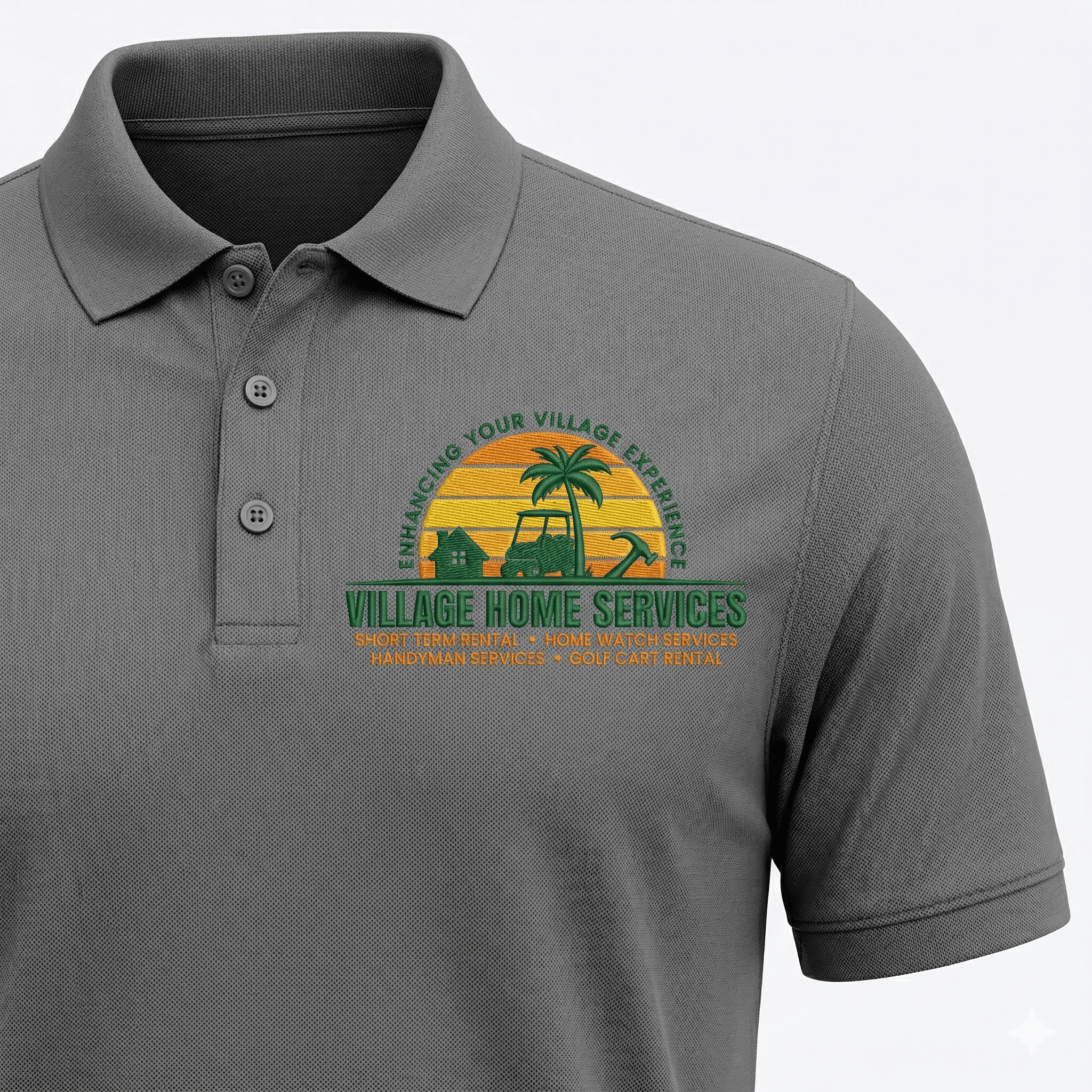 A sharp, comfortable polo that looks just as good at dinner on the square as it does on the back nine. This golf shirt carries the Village Home Services name and comes in gray or blue — versatile enough for wherever your day takes you.